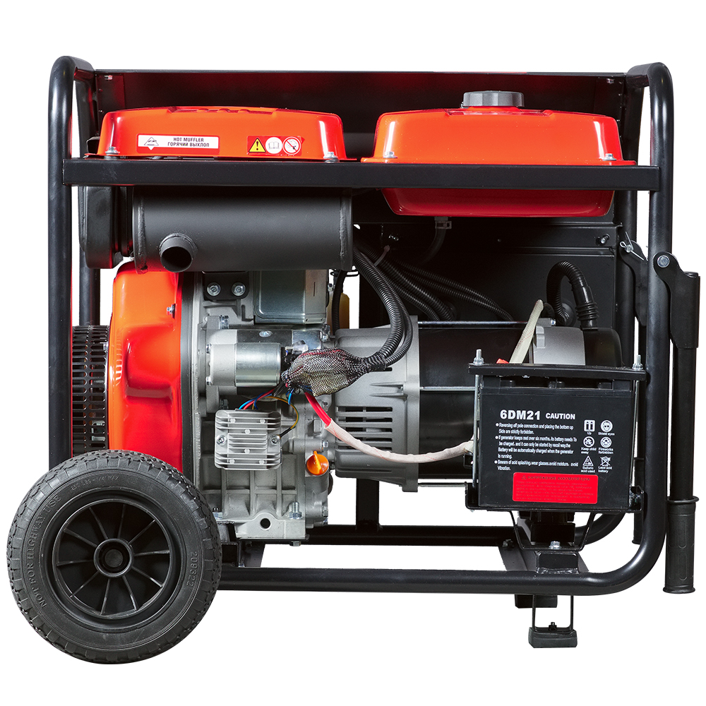 Дизельный генератор DS 7000 DA ES имеет систему комплексной защиты от короткого замыкания, превышения допустимой нагрузки и критического снижения уровня масла. Блок AVR регулирует выходное напряжение. Для удобства транспортировки модель имеет удобные обрезиненные ручки и колеса.