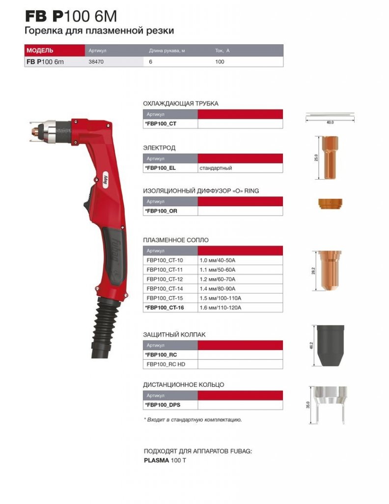 Инструкции о FUBAG Горелка для плазмореза FB P100 6m
