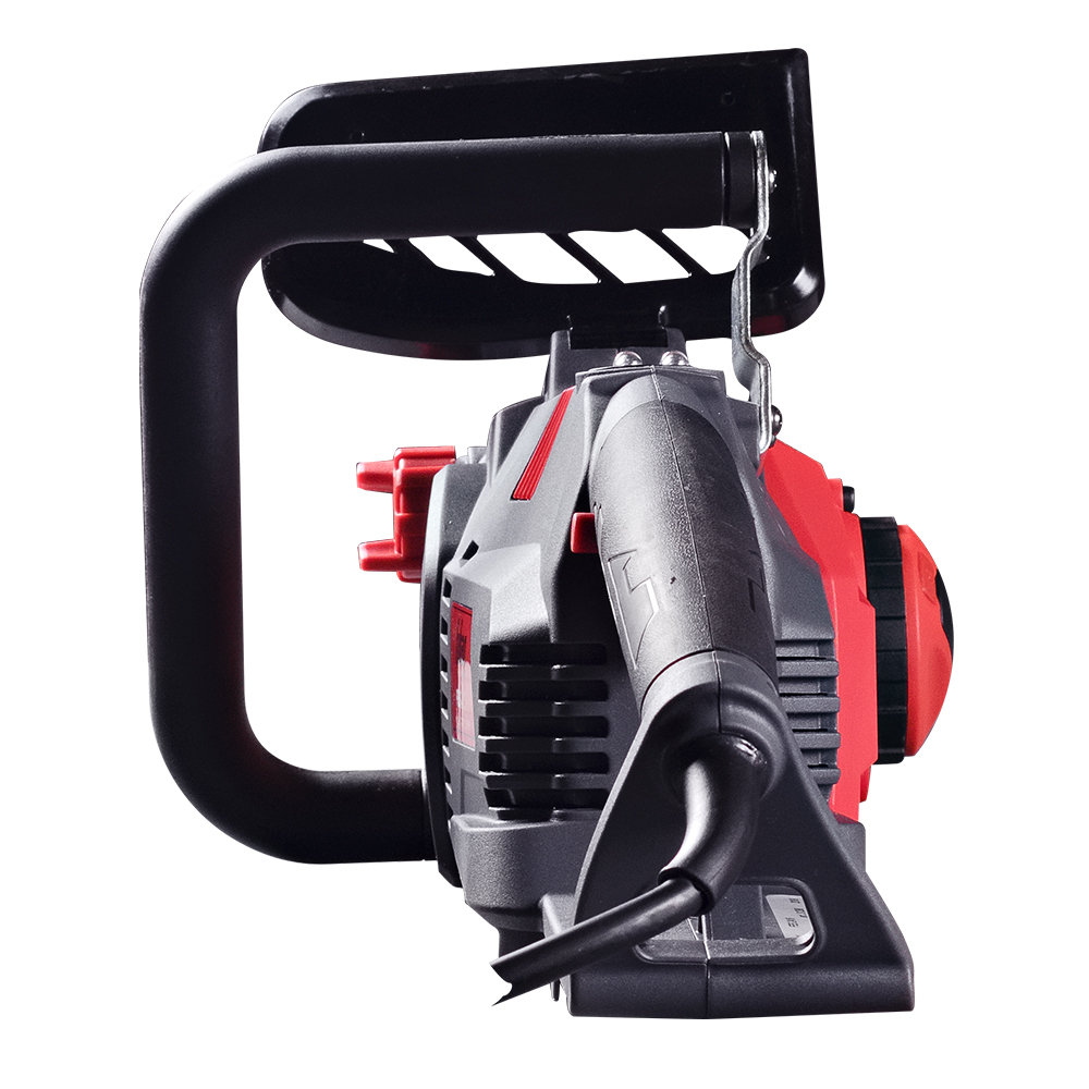 Прорезиненная ручка и крючок фиксации электрокабеля для удобной и безопасной работы с электропилой